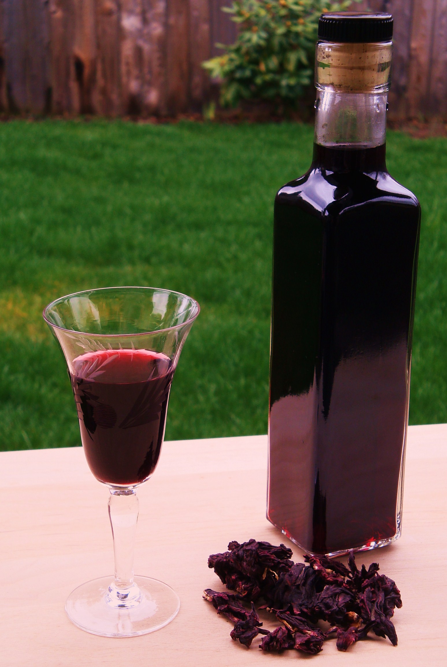 You could also make quite a tasty liqueur with any loose leaf hibiscus tea that you can find at your local store or tea shop.