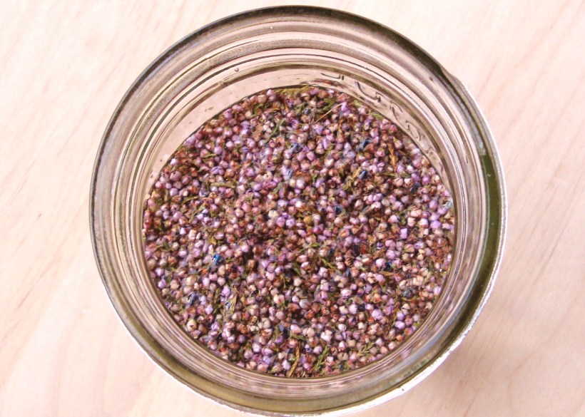 At a recent trip to the Homebrew Exchange, I picked up bunch of fun bottles, ingredients, and some inspiration! One of these ingredients was dried heather flowers.
