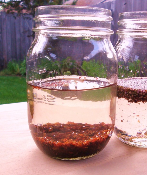 The result is a lovely golden color. The flavor is only slightly floral. It has a nice taste to it, but is hard to describe. I can tell you that it makes a great cocktail… recipes will be forthcoming. In the meantime, try a heather flower infusion, or better yet let us know about something new and interesting that you have infused.